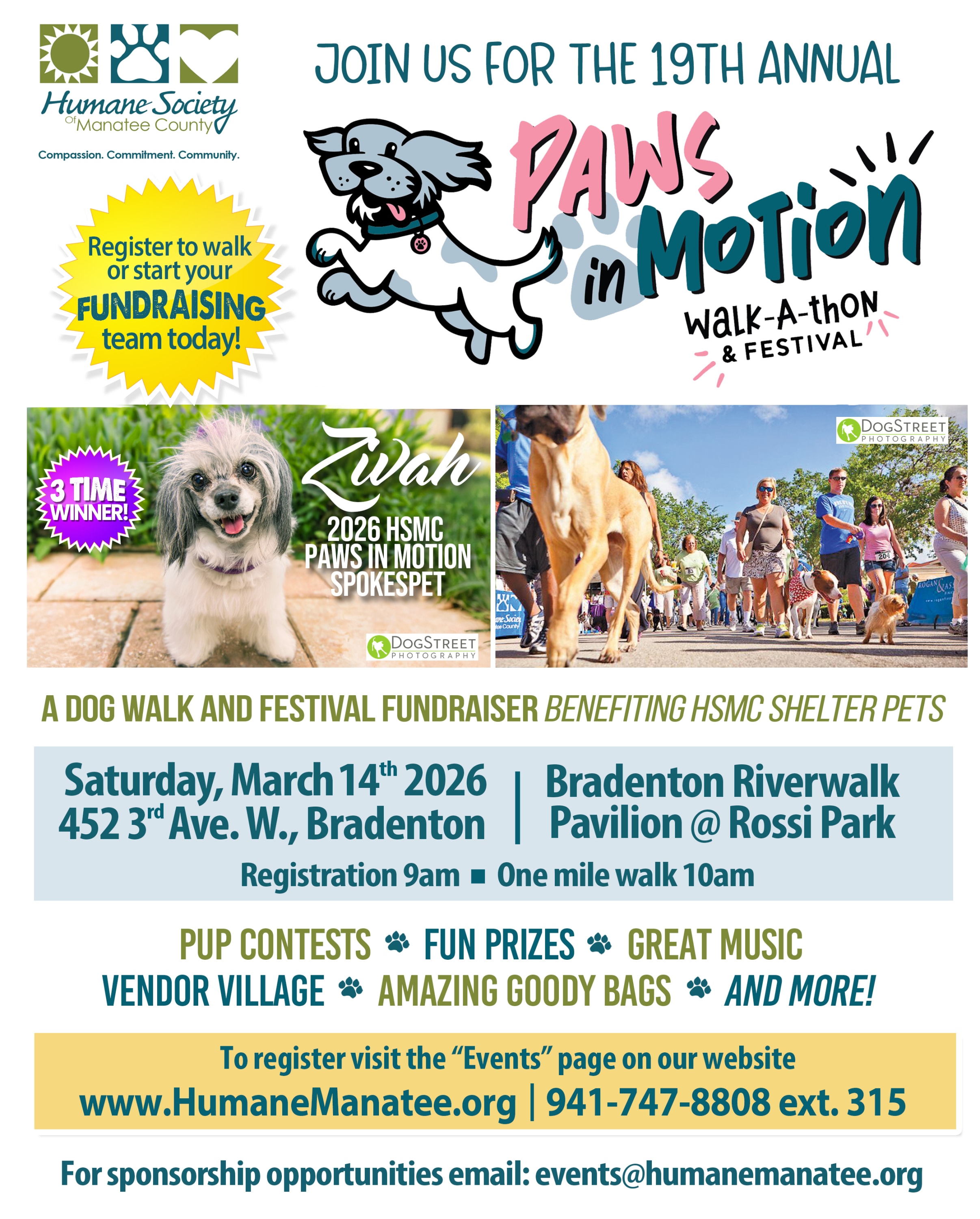A dog walk-a-thon and festival fundraiser Saturday March 14th 9am - 1pm DJ & Vendor Village